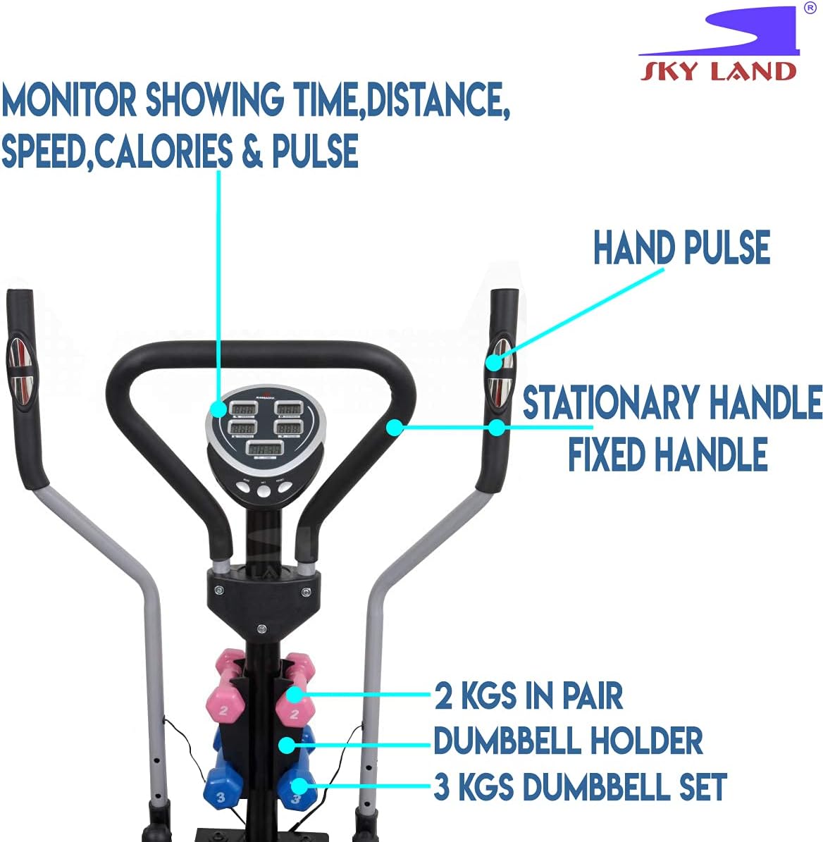 5-in-1 Orbitrek Exercise Bike | Elliptical Cycle with Stepper, Twister & Dumbbells | Adjustable Resistance | LCD Monitor & Cushioned Seat | Full-Body Home Gym Workout | EM-1133