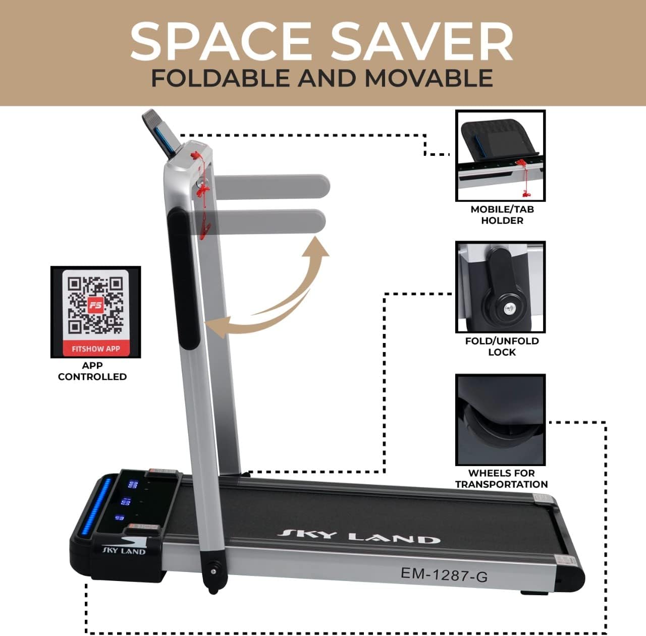Fitness 2 in 1 Foldable Treadmill Walking pad 4 HP Peak, 12 Programs, With Large Running Surface and App Control, Pre assembled EM 1287-G, Gray