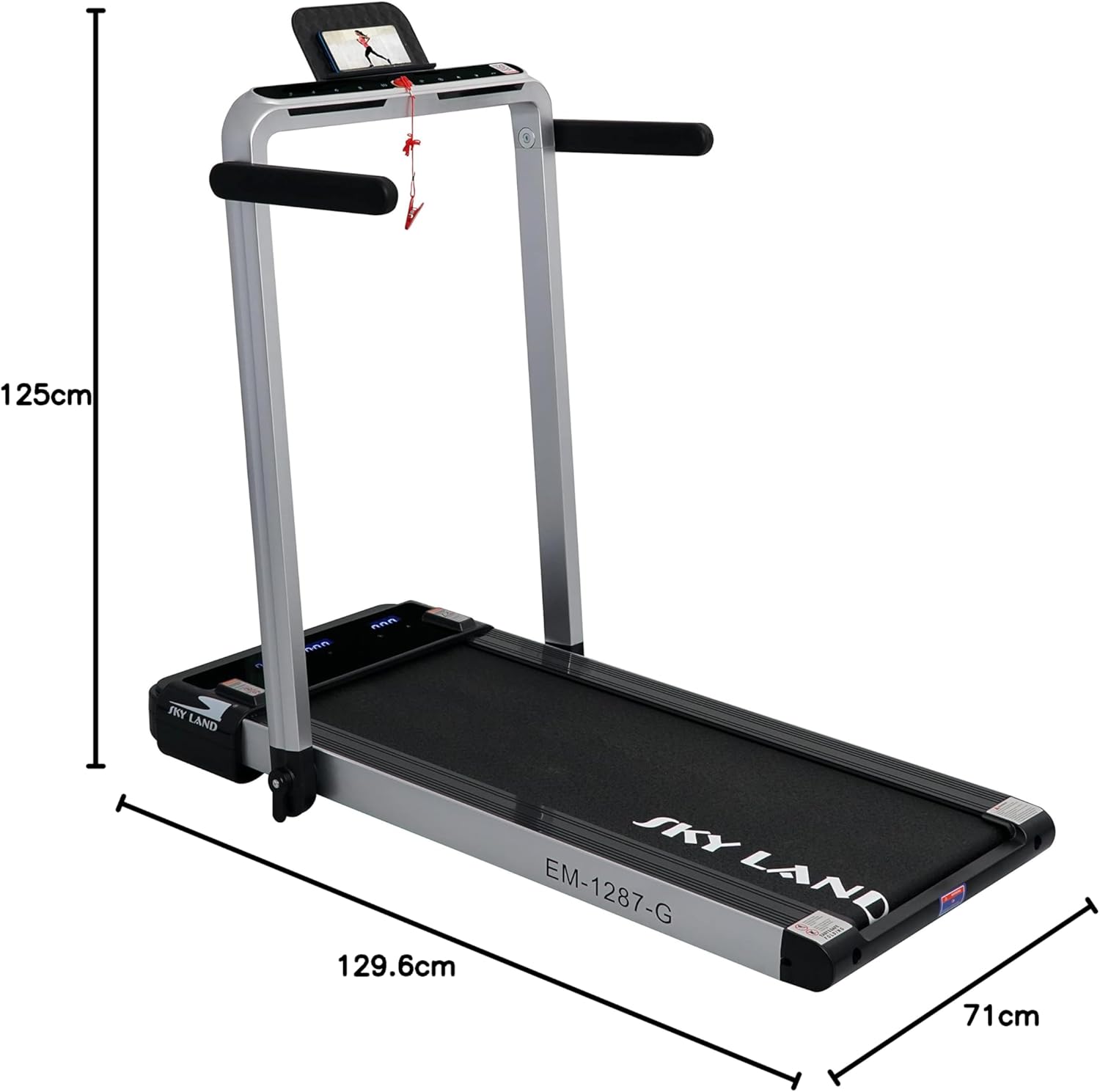 ? [Foldable Treadmill 2 in 1 Designed] The foldable treadmill for home has 12 preset programs with multi-workout modes. When the handrail is folded, it can be used as a desk walking machine at a speed of 1-6 km/h, simply for you to walk while working. When the handrail is raised, the running speed can reach 12 km/h.to meet your different training needs. The LED display shows time, speed, distance and calories in real time, and keeps track of movement data.