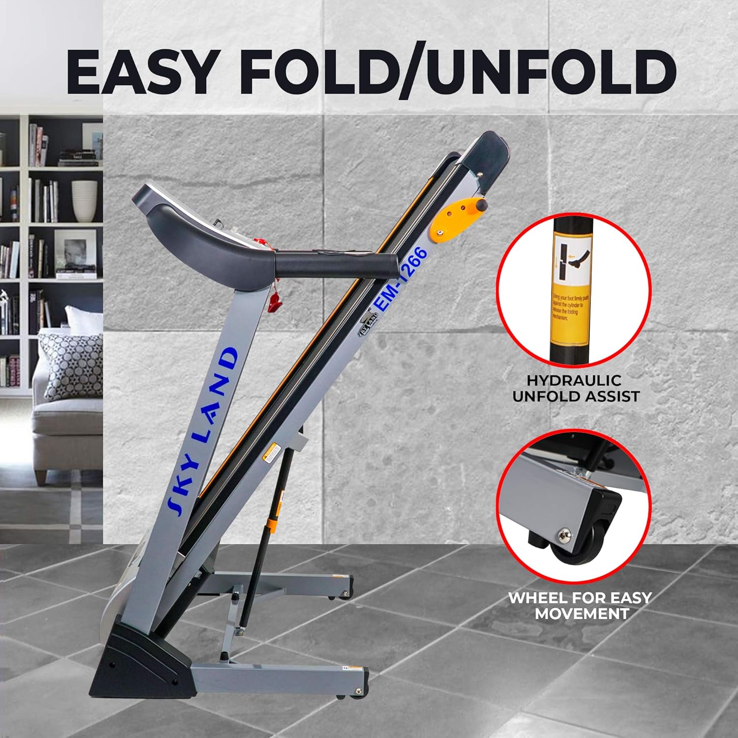 Foldable Motorized Treadmill, 2 HP DC Motor (4 HP Peak), 100kg Capacity, 0.8?C14 KM/H, 3-Level Manual Incline, 5″ LCD Display, Hi-Fi Speaker, Compact Running Machine for Home Use EM-1266
