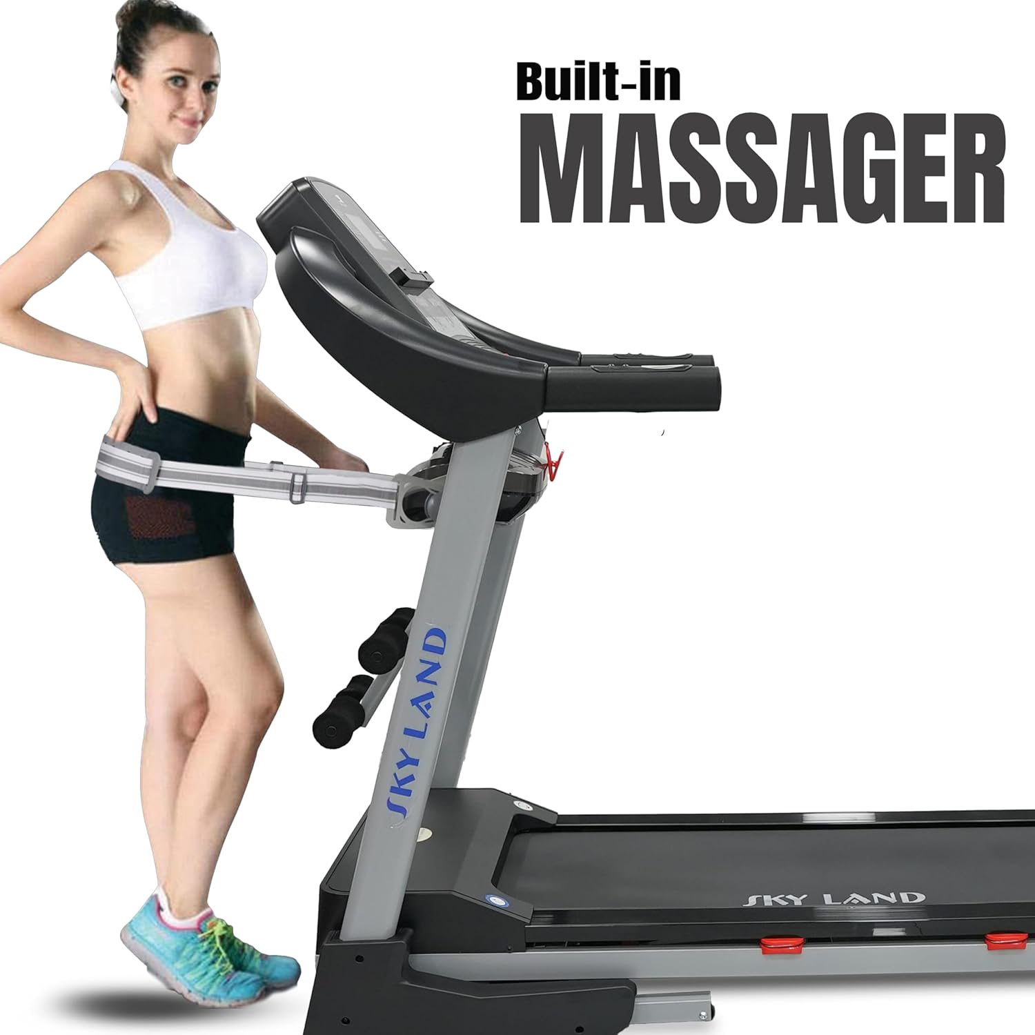 Built-in massager aids muscle recovery, while Bluetooth speakers let you enjoy music during workouts. A shock-absorbing, friction-coated running belt ensures joint protection, and the 5.5-inch LCD with quick-access buttons and heart rate sensors keeps your training safe and efficient.