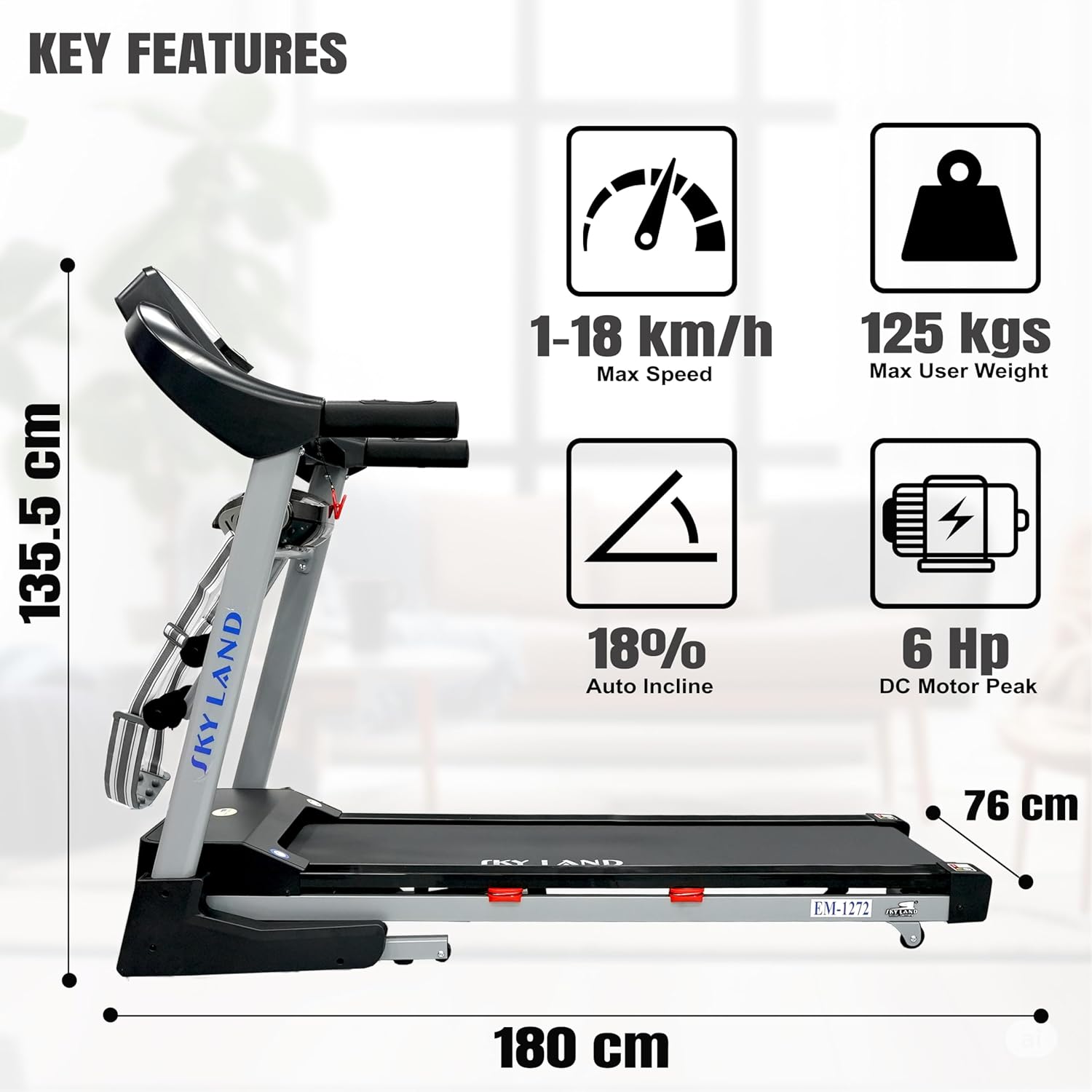 It has a 3.0 HP continuous motor with 5.5 HP peak, supporting speeds from 1?C18 km/h and an 18-level automatic incline for versatile workouts.