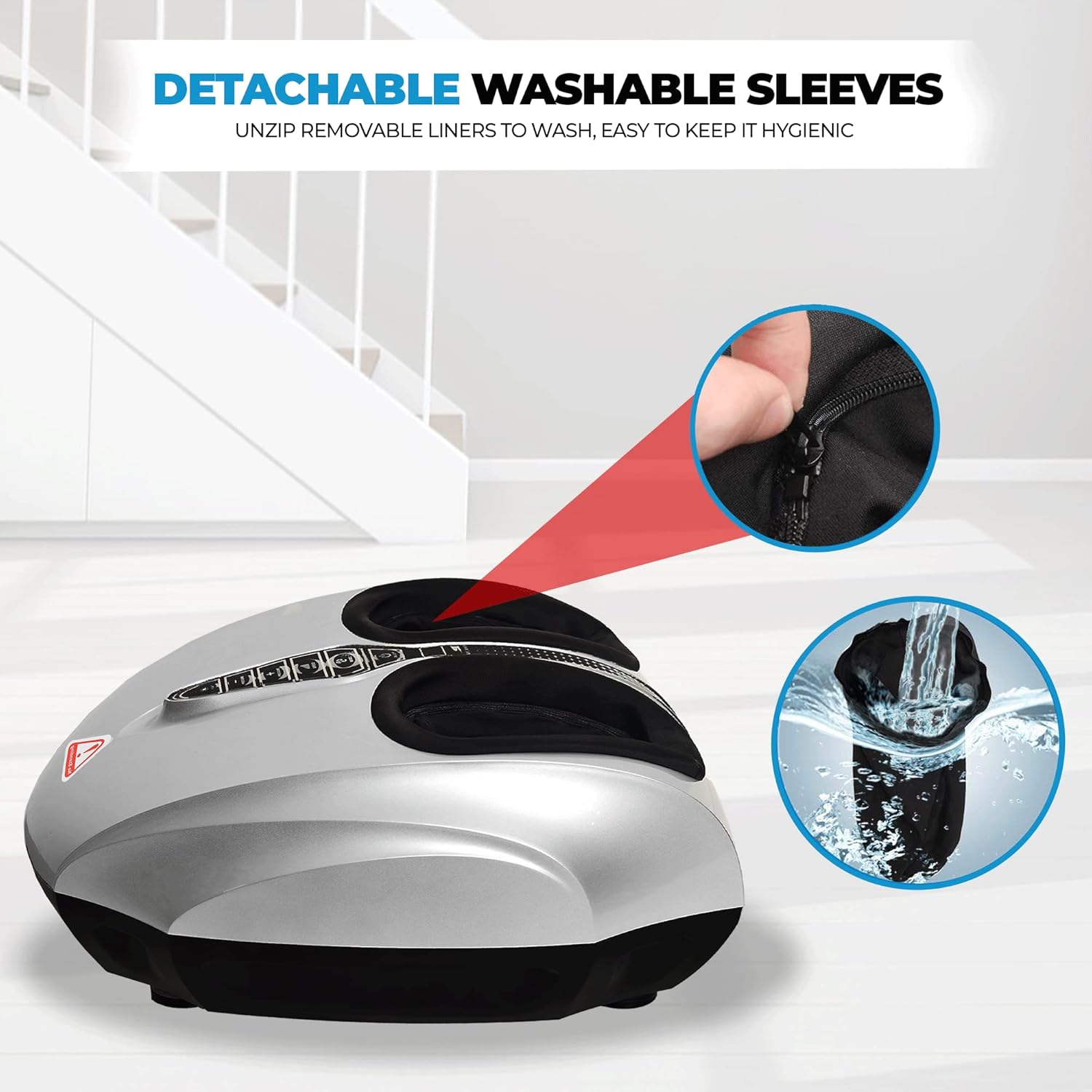 It uses deep kneading and air compression to target pressure points, helping relieve pain from conditions like plantar fasciitis and neuropathy while improving circulation.