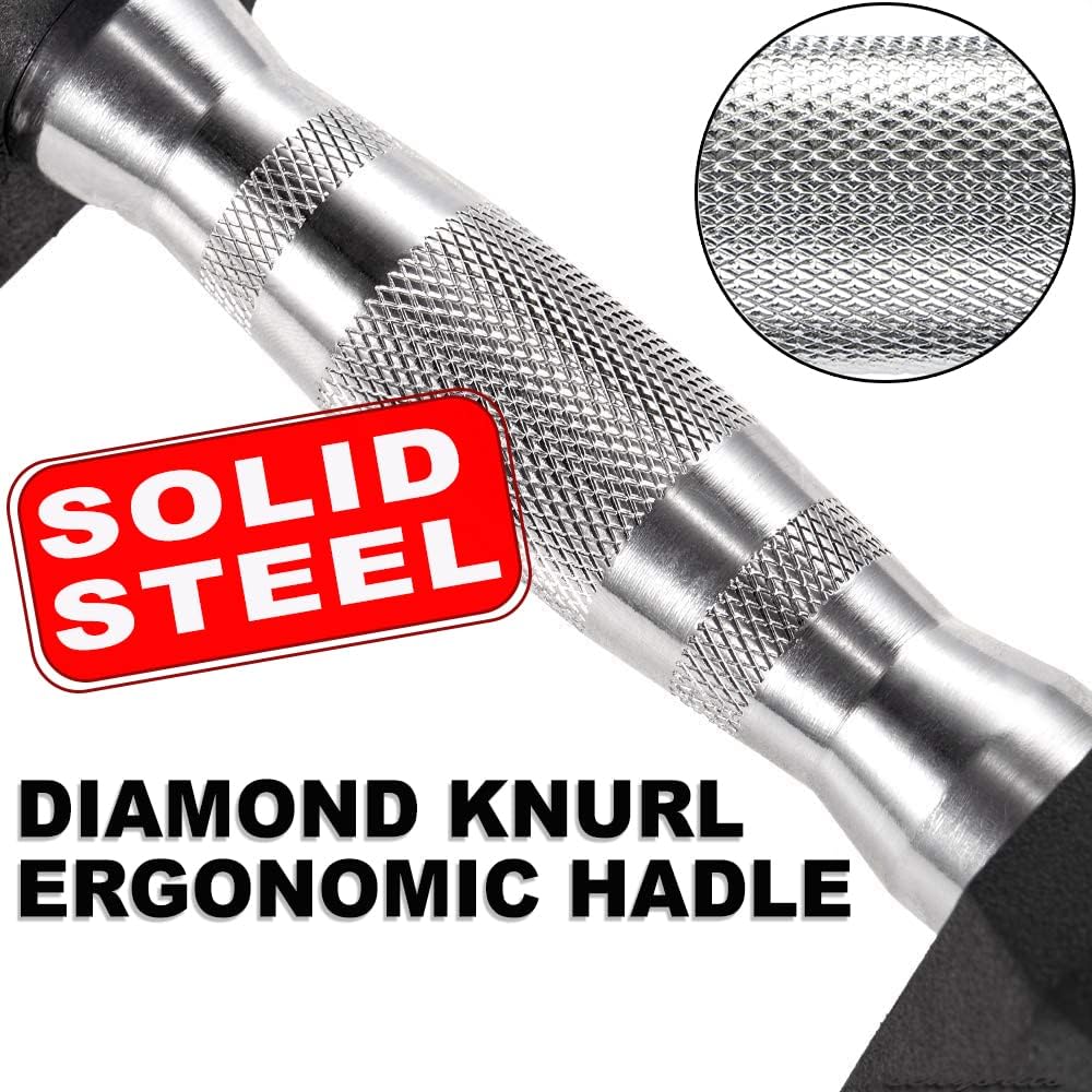 Elevate your training with the Sky Land Premium Hex Dumbbells, featuring an Anti-Roll Hexagonal Design that ensures stability on any surface while protecting your floors. Each dumbbell is equipped with an Ergonomic Knurled Handle—chrome-plated and precision-textured—to provide a secure, non-slip grip during your most intense sessions. Built for home and gym environments, the Durable Rubber Encasing shields your flooring from scratches and acts as a sound dampener to reduce noise from drops. Reliable and professional-grade, these weights are the perfect essential for every athlete reaching for their fitness goals.