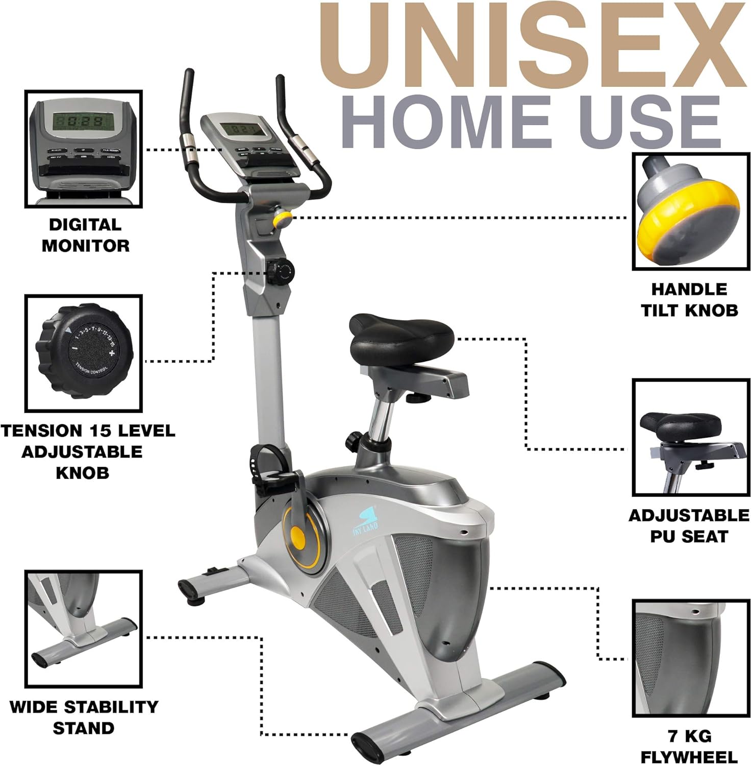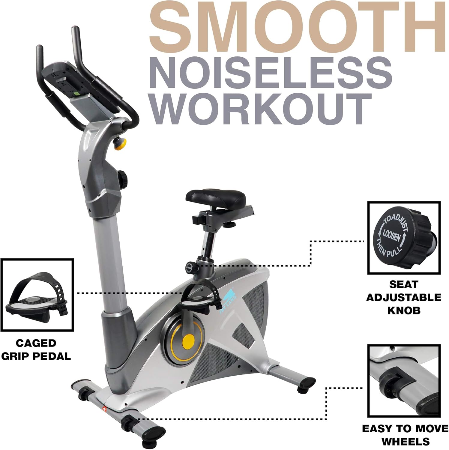 SILENT MAGNETIC DRIVE SYSTEM: The SKY LAND Upright Exercise Bike features an ultra-quiet magnetic drive system, ensuring smooth and silent operation with only 20 decibels of sound??ideal for home or apartment use without disturbing others.