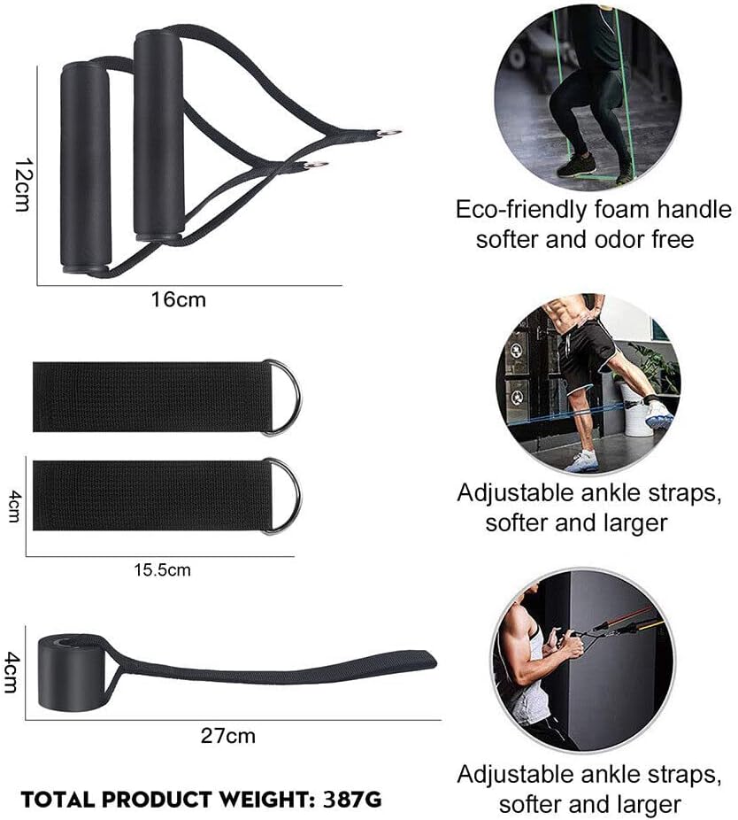 | Included Components: | 5x Tubes, 2x Foam Handles, 2x Ankle Straps, 1x Door Anchor, 1x Carry Pouch |