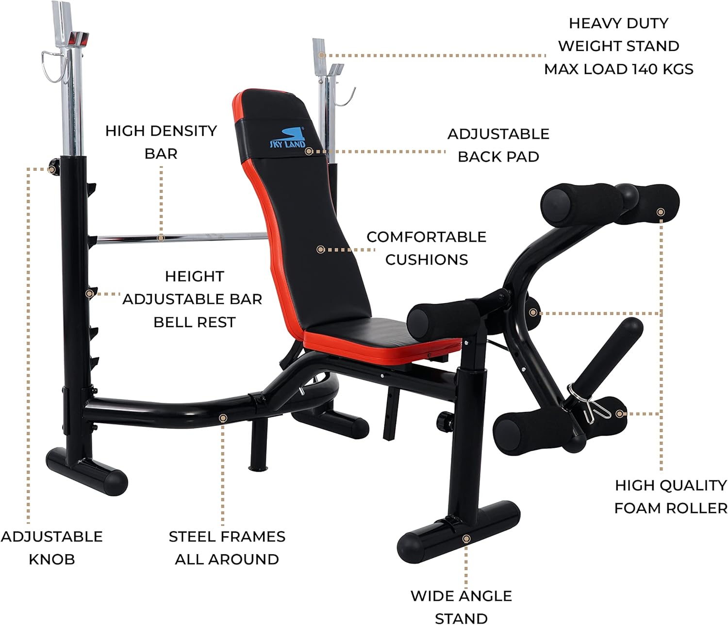 Take your home fitness to a professional level with the SKY LAND EM-1831 Multi-Function Bench. Engineered as a comprehensive All-in-One Adjustable Workout Bench & Squat Rack, this station provides everything you need for high-intensity strength training. Whether you are performing heavy squats, incline bench presses, or leg developments, the EM-1831 offers the structural integrity and versatility required for a complete full-body transformation.