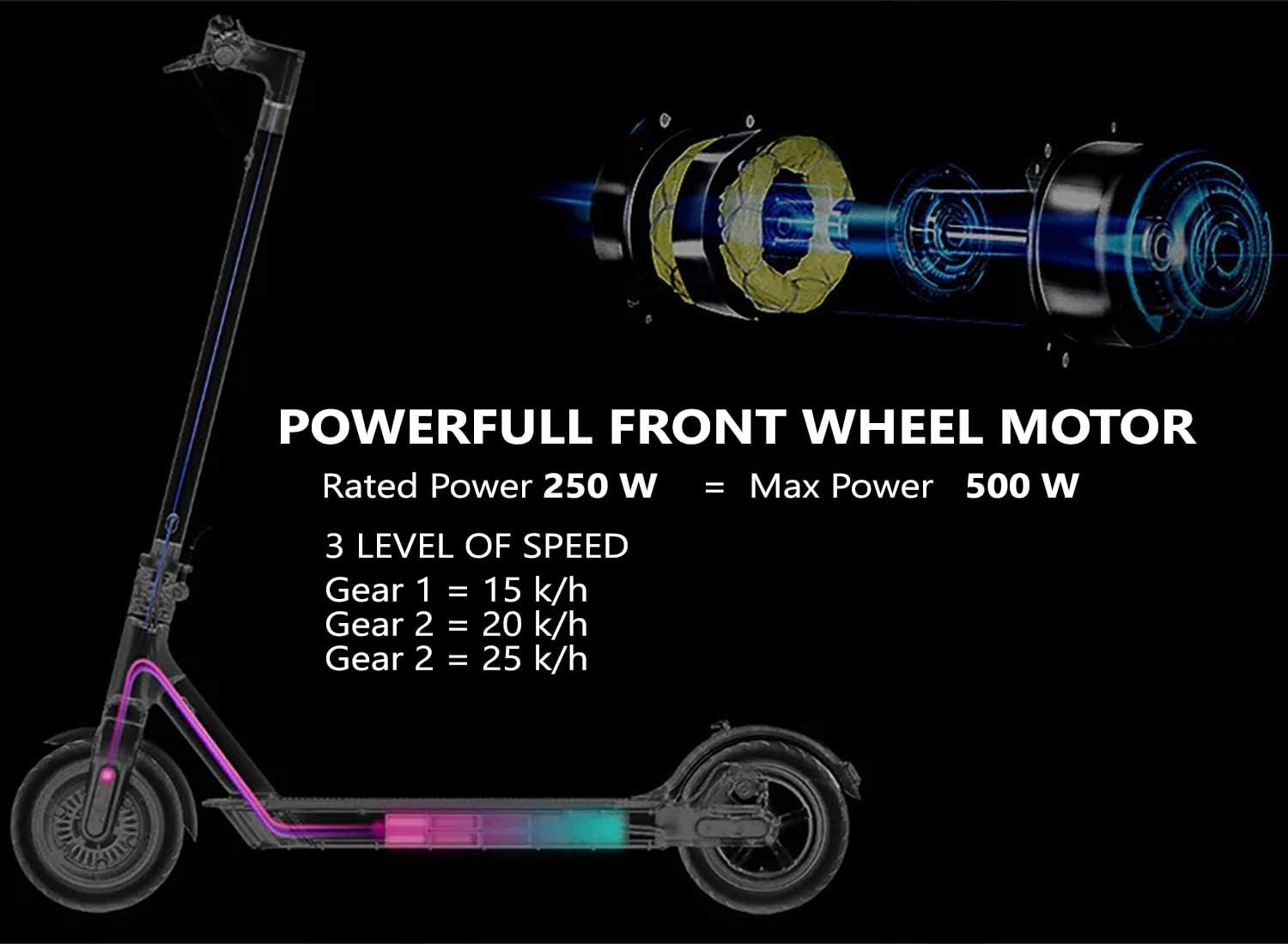 SKY LAND Electric Scooter Pro With 3 Level Speed and Fixed Digital Speedometer On Board -E scooter Black, with Top speed 25km/hr EM-1603-B