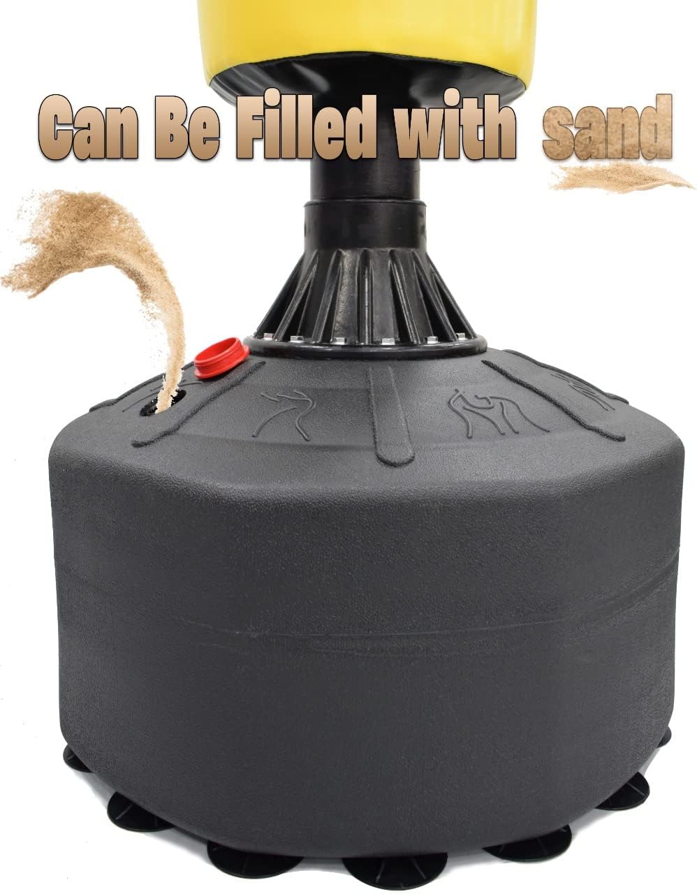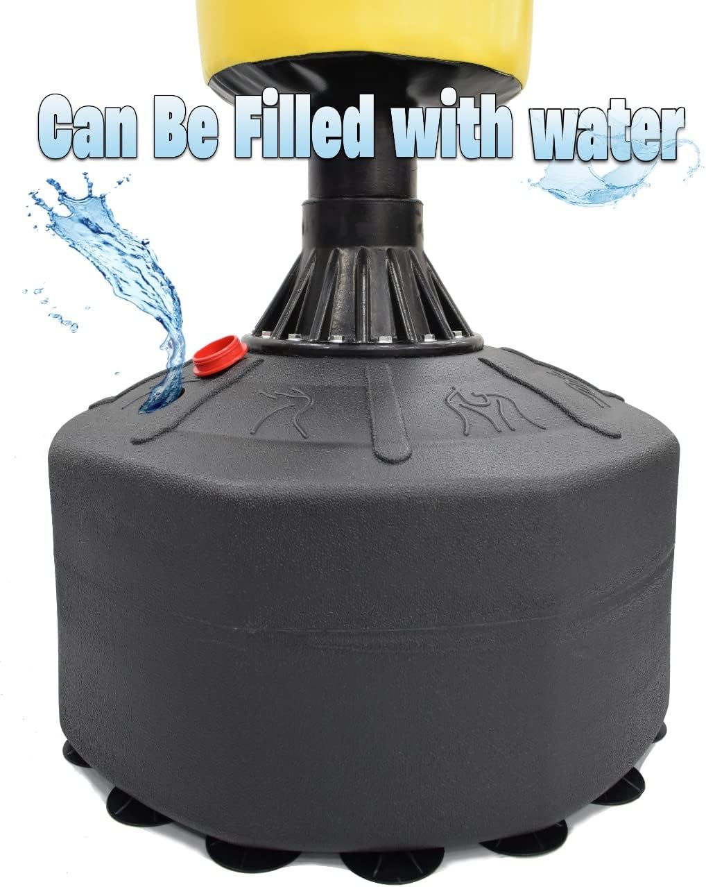 SUPER STABLE BASE WITH 18 SUCTION CUPS: The strong suction base keeps the punching stand firmly in place during intense workouts. Fill with sand or water for extra weight and stability.