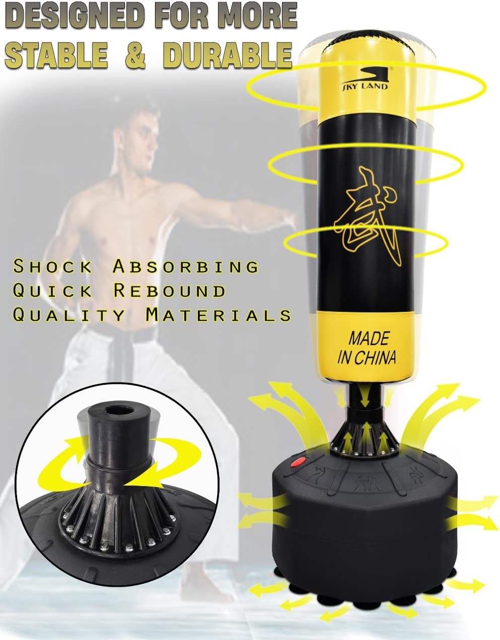 FREESTANDING PUNCHING BAG ? 170CM HEIGHT: SKY LAND EM-1833 stands 1.7M tall, making it perfect for adults. Train boxing, kickboxing, MMA, Muay Thai, and martial arts at home or in the gym.