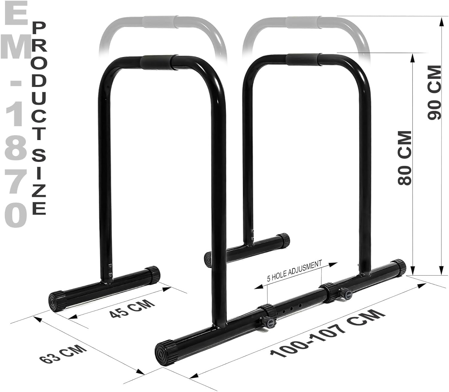 -Space-Efficient: Despite its sturdy construction, the dip station takes up minimal space and is easy to assemble and disassemble within minutes.