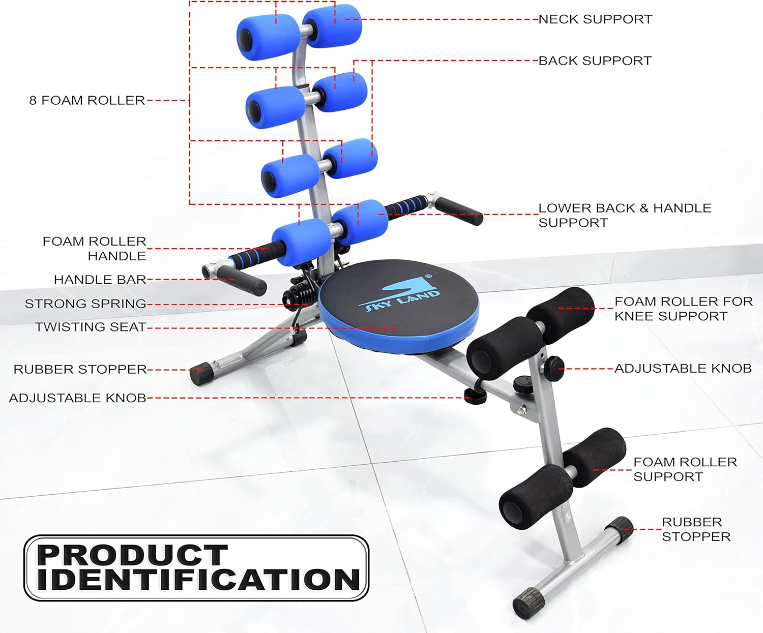 Transform your fitness journey with the SKY LAND Adjustable Abdominal Trainer EM-1867 – a versatile home gym machine designed for total body workouts. Whether you’re targeting upper & lower abs, chest, back, biceps, or triceps, this foldable workout bench has everything you need for a sculpted physique!