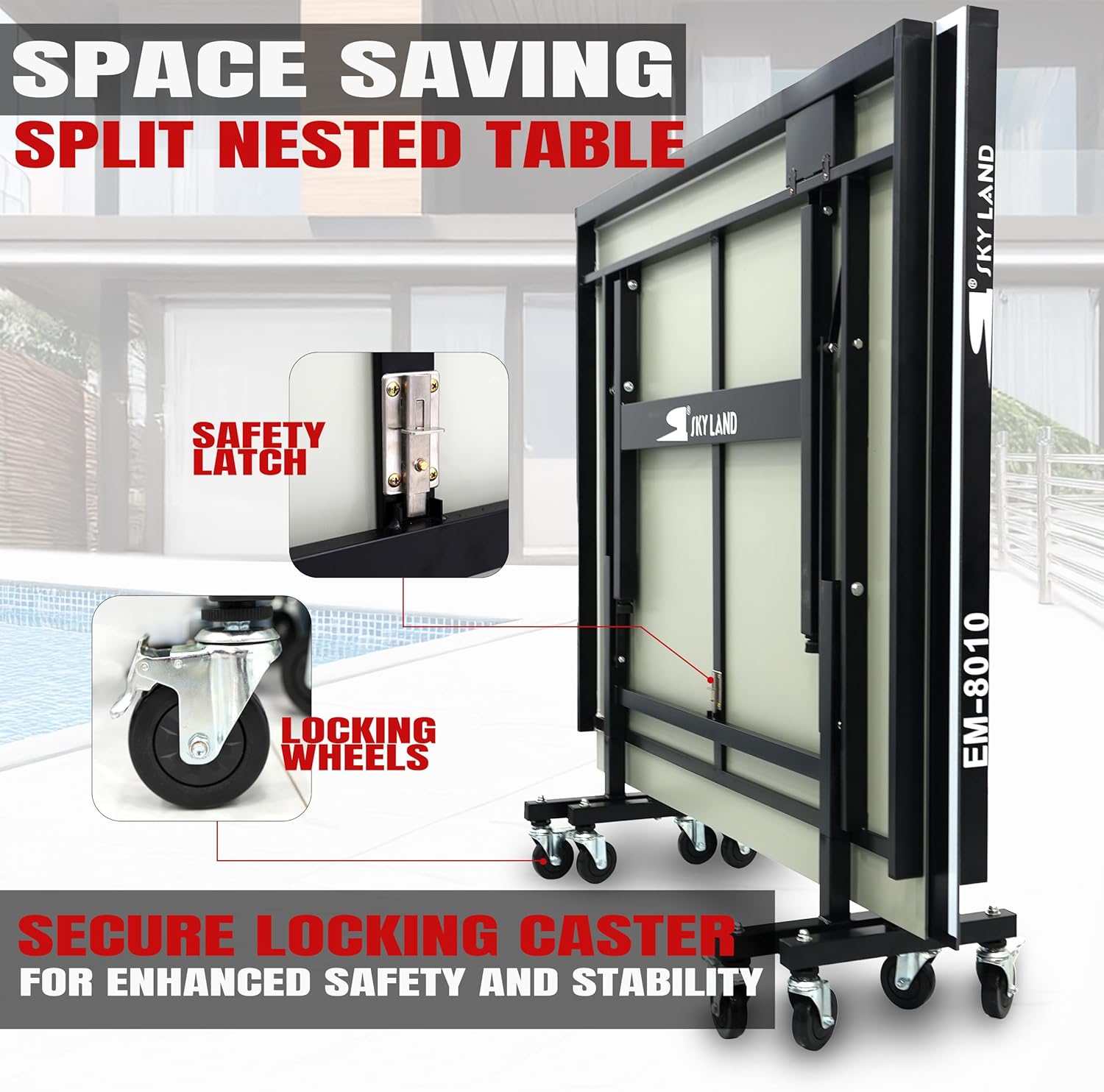 The SKY LAND EM-8010 Outdoor Tennis Table is designed for players looking for a reliable table tennis solution for outdoor environments without compromising play quality. Built with waterproof aluminum composite panels, this ping pong table delivers consistent ball bounce and dependable performance in outdoor conditions.