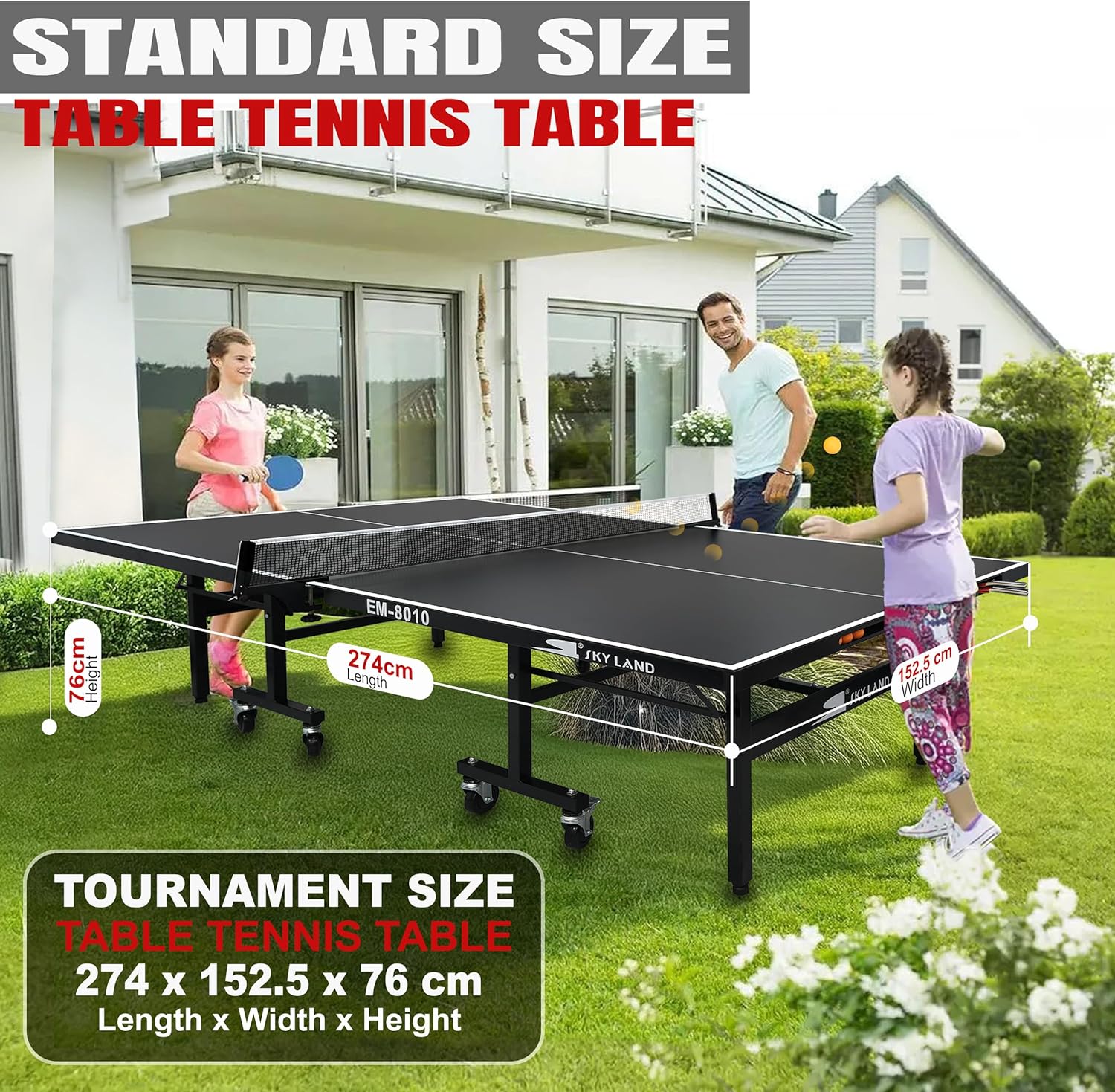 Ideal for homes, schools, recreational centers, and community spaces, the SKY LAND EM-8010 combines durability, practicality, and professional dimensions in a single outdoor table tennis system
