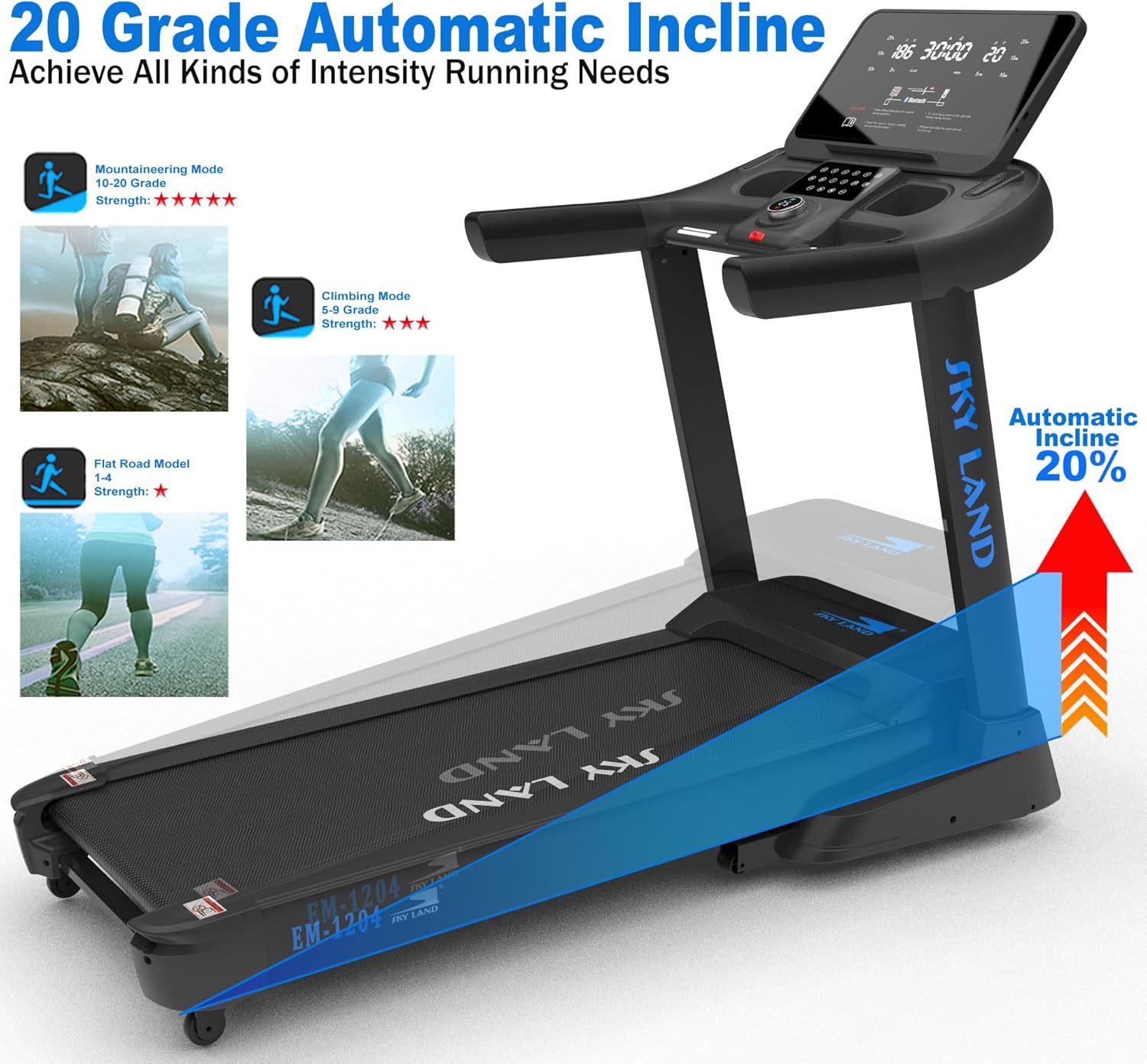 A 52 ?? 140 cm belt with up to 20% auto incline helps simulate real terrain and boost cardio performance.