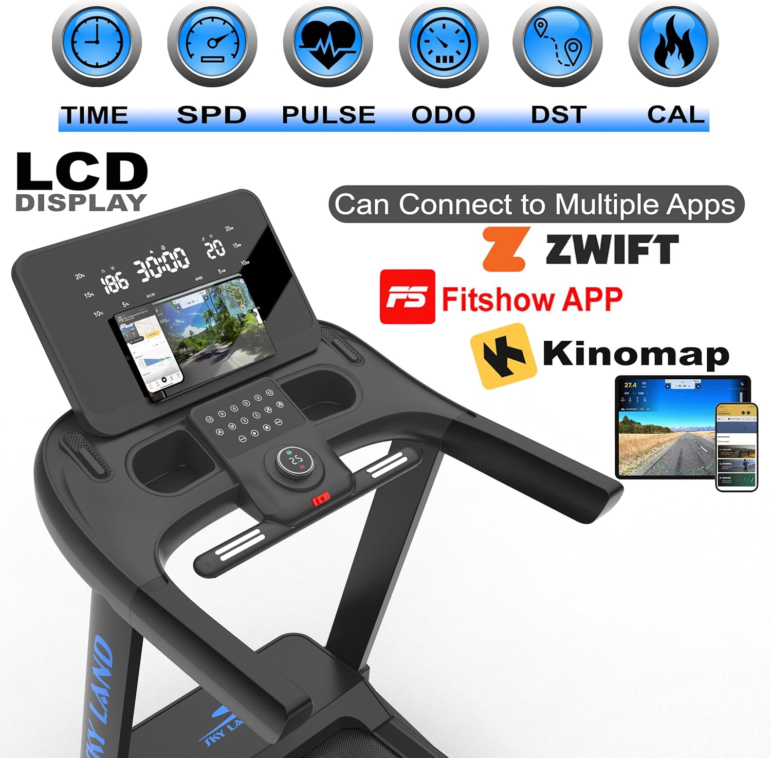 ADVANCED BLUETOOTH & APP COMPATIBILITY: Connect with Kinomap, Zwift, and Fitshow apps for real-time fitness tracking, while enjoying music through built-in Bluetooth speakers for a more enjoyable workout experience.
