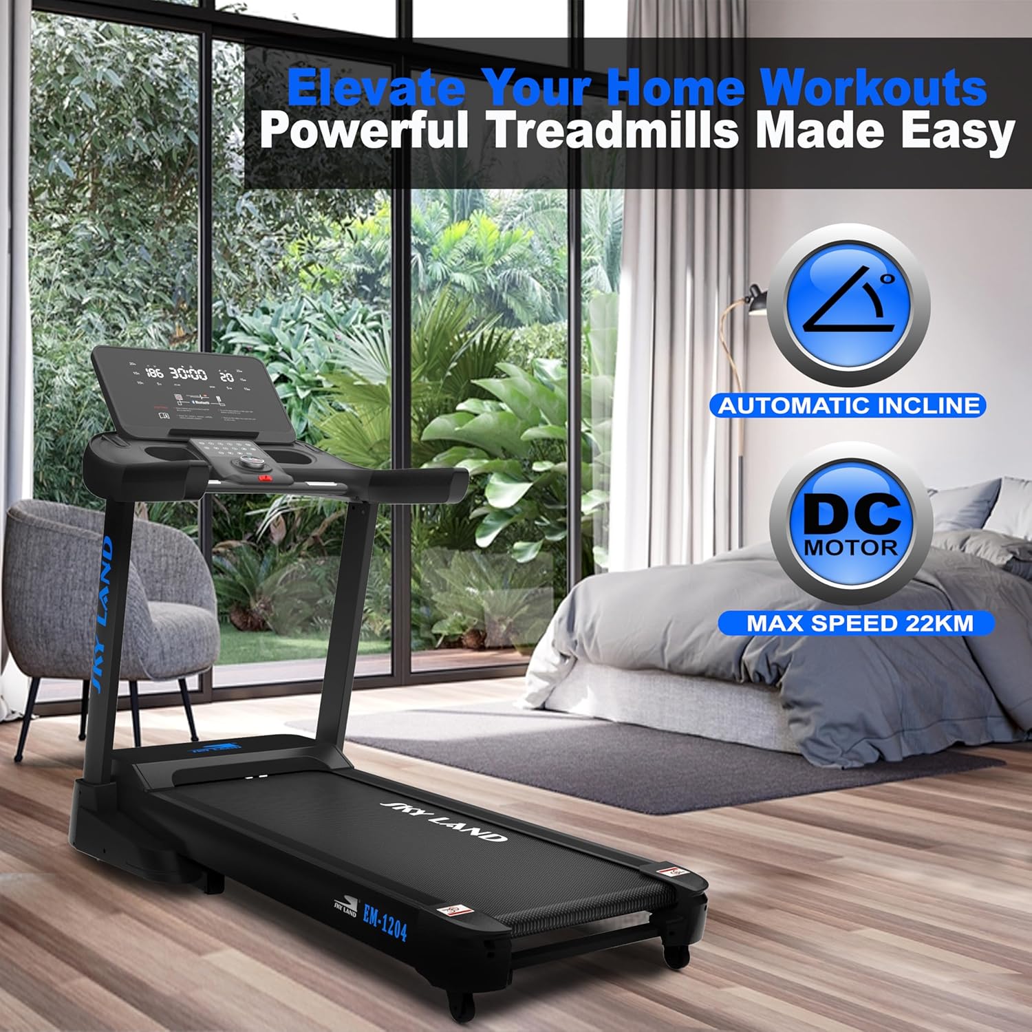 POWERFUL 7 HP MOTOR WITH WIDE SPEED RANGE: Featuring a 3.0 HP continuous and 7.0 HP peak motor, this treadmill offers speeds from 1 to 22 KM/H, perfect for walking, jogging, and intense running workouts at home or in semi-commercial spaces.