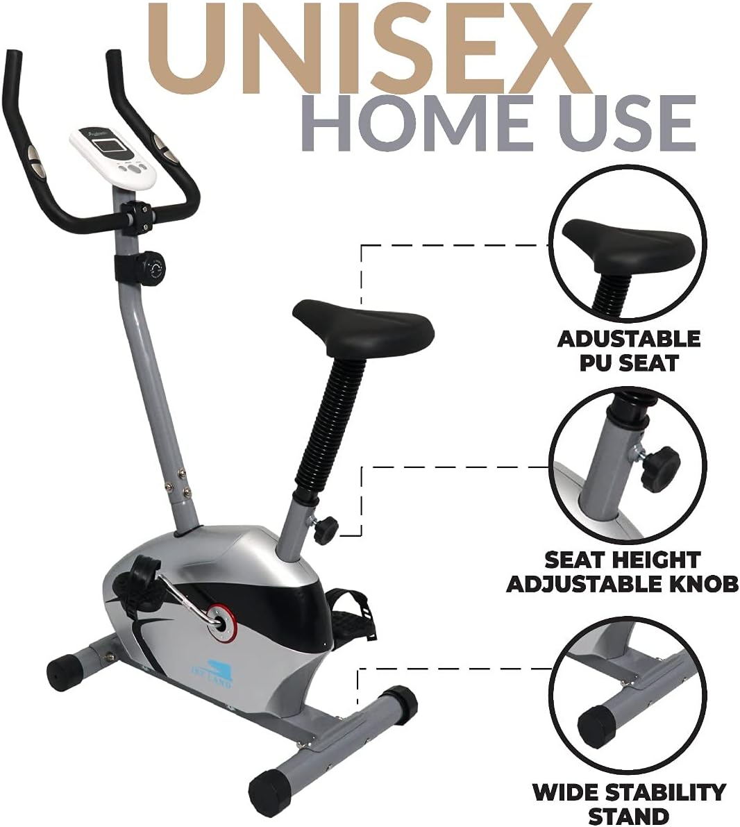 Stay fit at home with this compact exercise bike designed for all fitness levels. Enjoy 8 resistance levels, silent pedaling, and real-time tracking via LCD monitor. Ergonomic seat, non-slip pedals, and pulse sensors ensure a safe and comfortable workout.